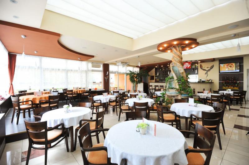 Im Hotel befindet sich ein hauseigenes Restaurant mit beliebten gastronomischen Köstlichkeiten, ein Wintergarten Cafe Euphoria, eine Weinstube und eine Sommerterrasse. Außerdem gibt es ein geräumiges und modern eingerichtetes Kongresszentrum und ein entspannendes Wellnesszentrum (Schwimmbad und Sauna). Das Hotel verfügt über einen eigenen Parkplatz mit einer Kapazität von bis zu 90 Parkplätzen. Ihre Haustiere sind im Hotel ebenfalls willkommen.